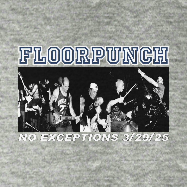 Three sided t-shirt design. Designed exclusively for the Floorpunch "No Exceptions" book release party on 03/29/2025. Two back print variants were made.